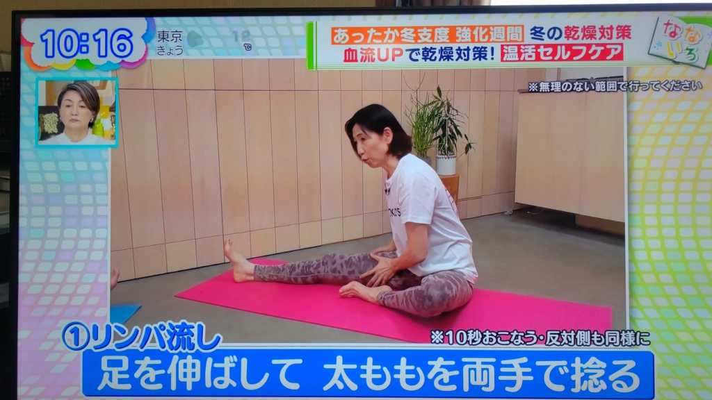 番組内では、「乾燥対策としての温活」をテーマに、冬に取り入れたいセルフケアとして「美温活リンパストレッチ®」を実演。